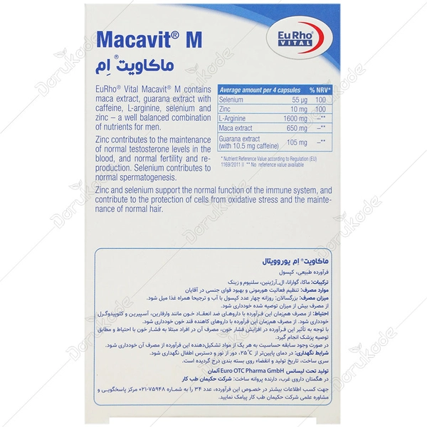 - ماکاویت ام حاوی سلنیوم و زینک برای کمک به تنظیم فعالیت هورمونی آقایان