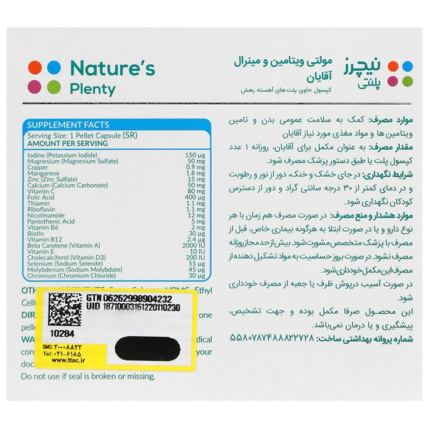 منع مصرف مولتی ویتامین بالای 50 سال مردان نیچرز پلنتی